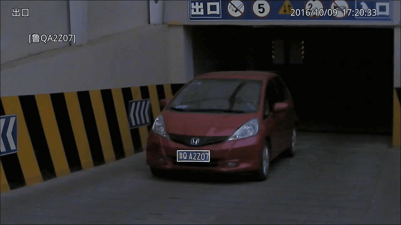 同時調節(jié)攝像機萬向節(jié),使車牌盡量保持水平,避免出現(xiàn)車牌左高右低或者左低右高的情況, 佳的效果可以參考下圖: